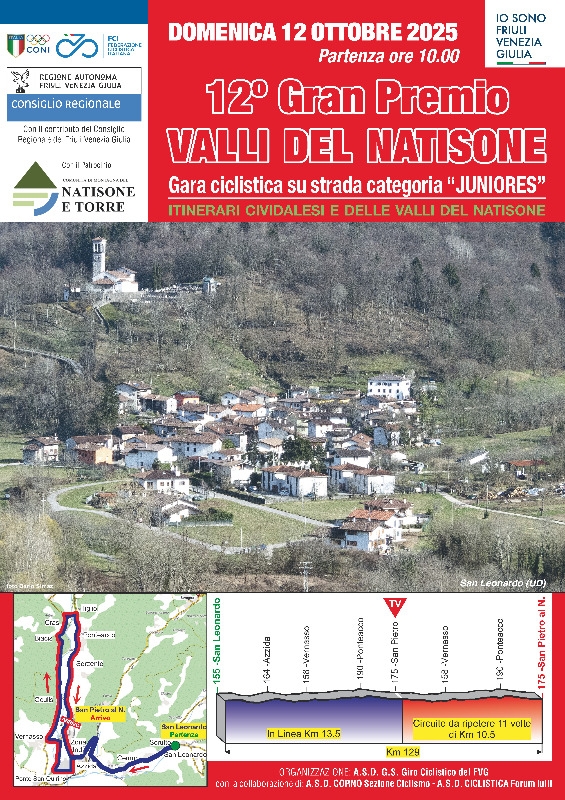 L'orario di partenza della corsa è stabilito alle ore 10,00 da San Leonardo, mentre l'arrivo è previsto alle 13,18 circa a San Pietro al Natione davanti al palazzo comunale e alla filiale di Civibank.
